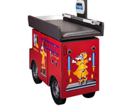 7833 Imagination Series Engine K-9 Scale Table: The Fun Series Engine K-9 Scale Table features all original Clinton illustration and a 2 door & 1 drawer storage area. The replaceable center pad is designed with easy clean padding and laminate base, and is surrounded with a top rim on three sides. A dependable Doran scale provides accurate weight measurements, and includes a built-in infantometer with folding ends for measuring height.