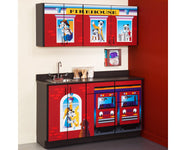 6133 BW Imagination Series Engine K-9 Cabinets: The Engine K-9 Cabinets feature all original Clinton illustrations with graphics that are permanently embedded in the high pressure laminate. This preassembled unit save hours of construction time. The cabinets feature touch chip resistant PVC edges , 4 adjustable leveling feet on each unit, and 3-way adjustable, soft close hinges. A spacious 3 drawers and 8 doors of storage space are included.